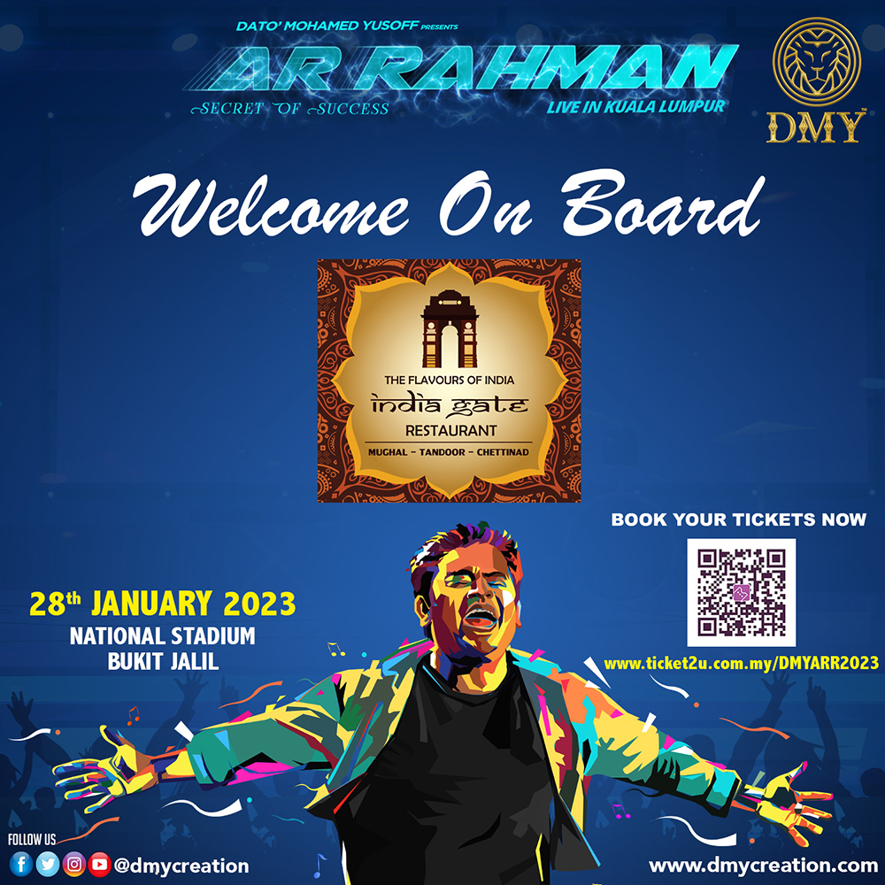 India Gate Restaurant is the proud Food & Beverage sponsor of the A.R. Rahman Secret of Success Live in Kuala Lumpur concert.